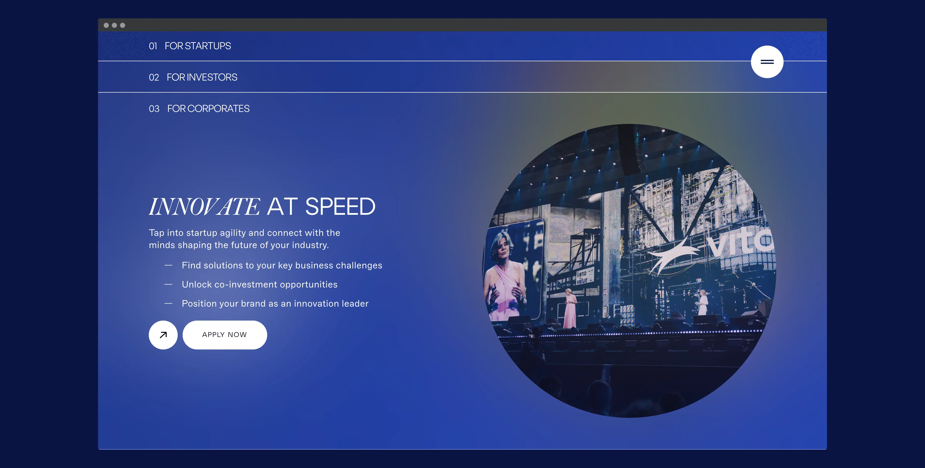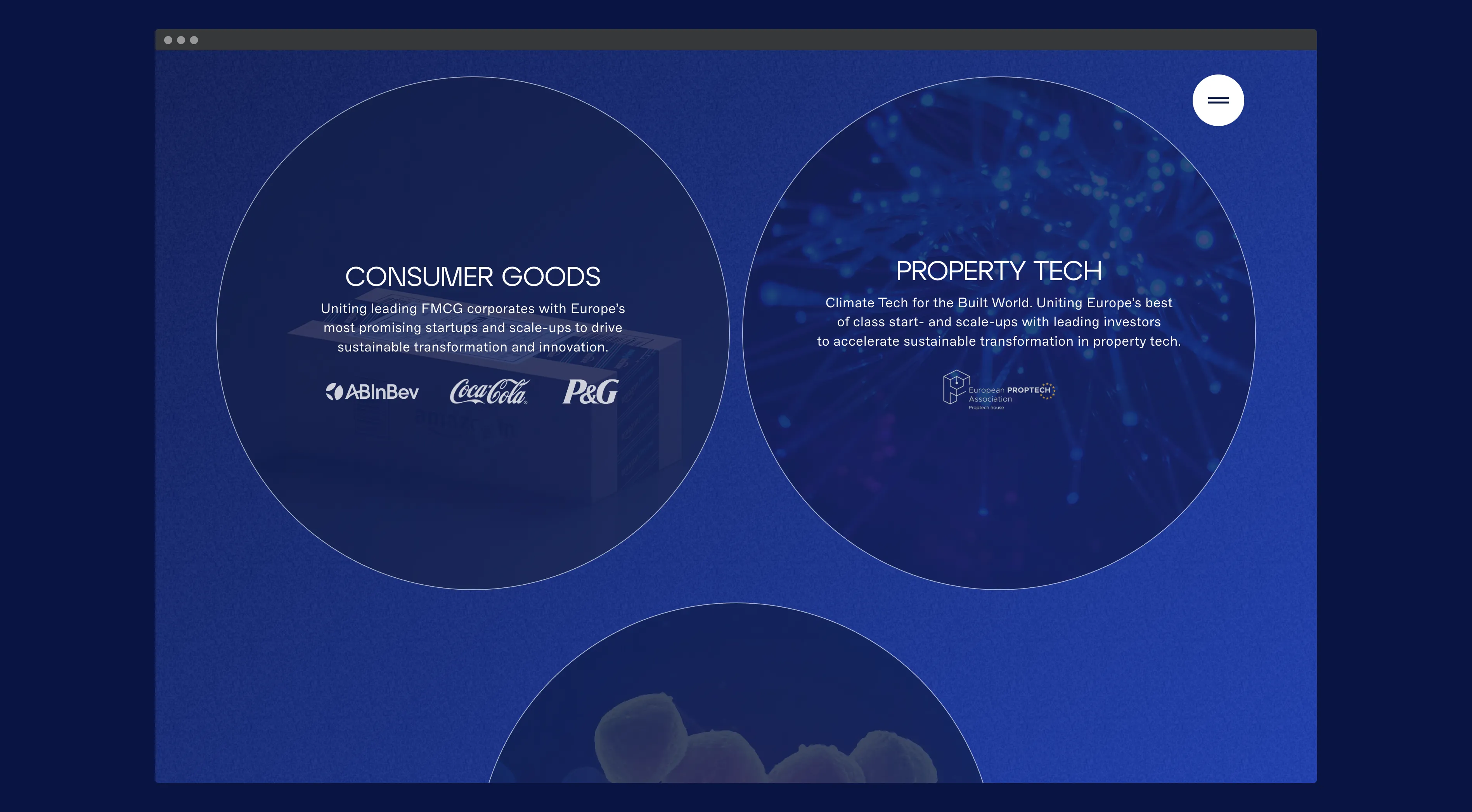 The content strategy had to highlight three pillars: the elite startups, the partnering brands, and the overarching mission. We worked closely with the team to design clear sections for each, from the Circles of Impact to startup showcases, while keeping the flow cohesive and uncluttered.